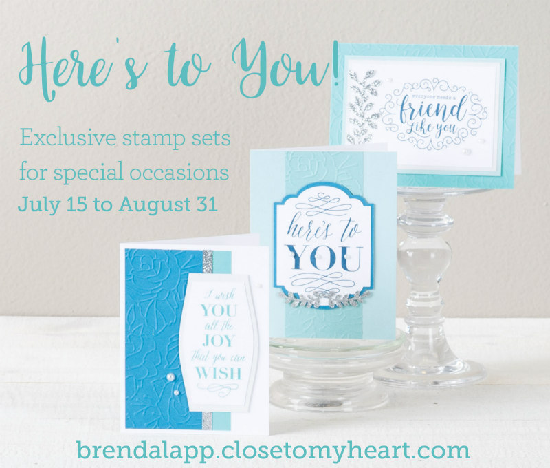 The full Here's To You product list is posted on July 14 or you can head over to my Consultant Website. There are four stamps to choose from or you may purchase a workshop which includes all of the stamps. The workshop is available with or without the Rose Embossing Folder.